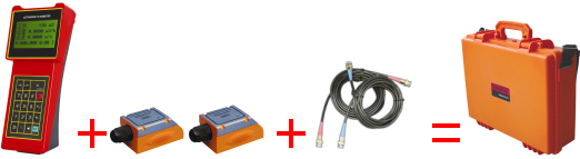 便携式超声波流量计的全套配置包括:转换器+传感器+连接电缆5m*2+传感器安装夹具+电源适配器+仪表包 其中: